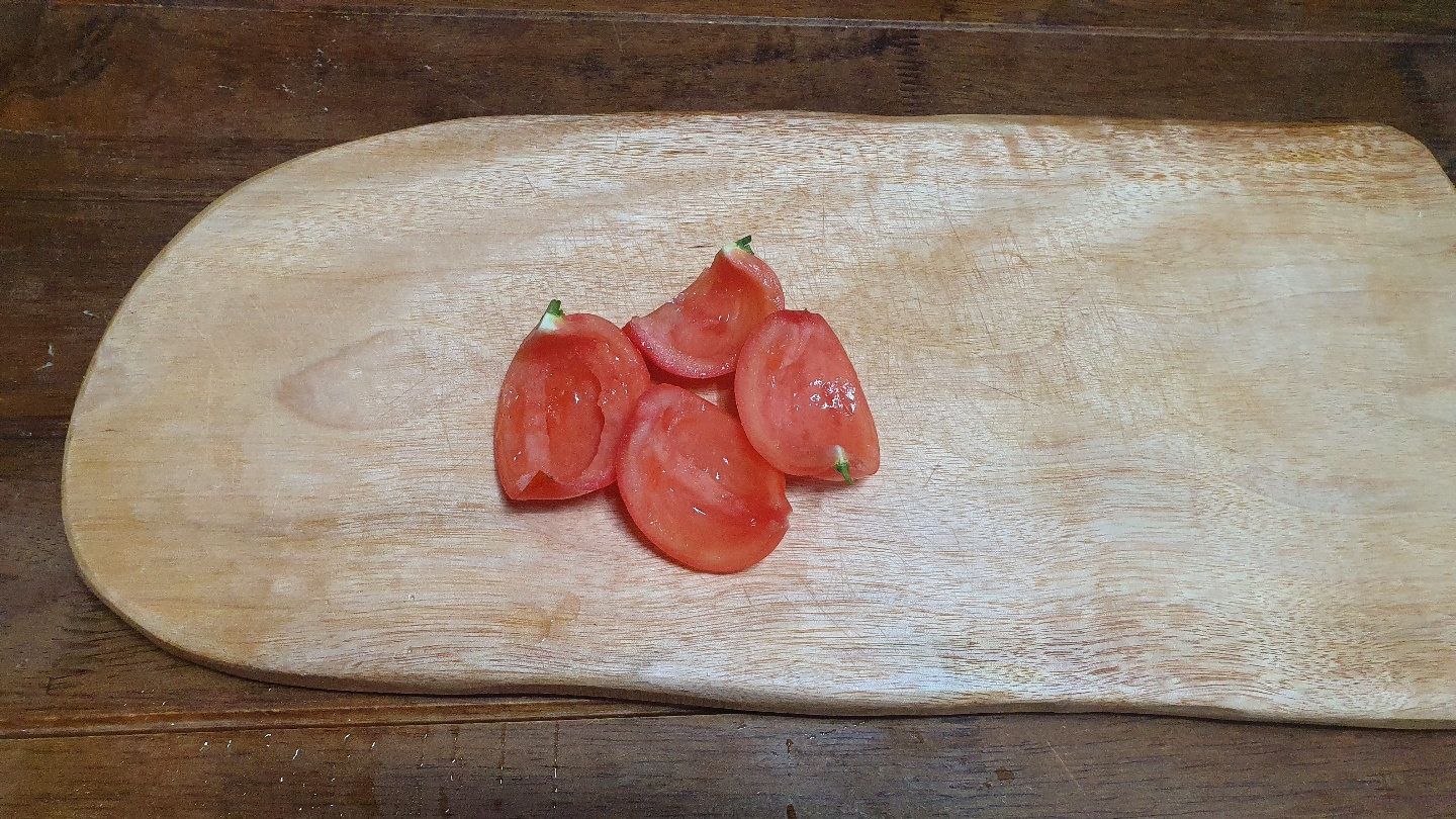 나머지 양파도 토마토와 비슷한 크기로 잘라주세요.